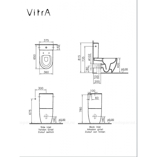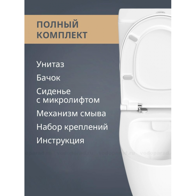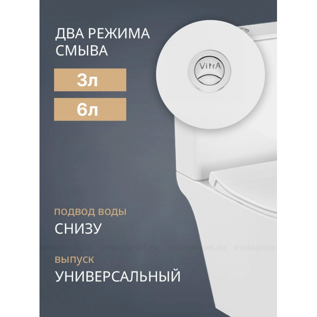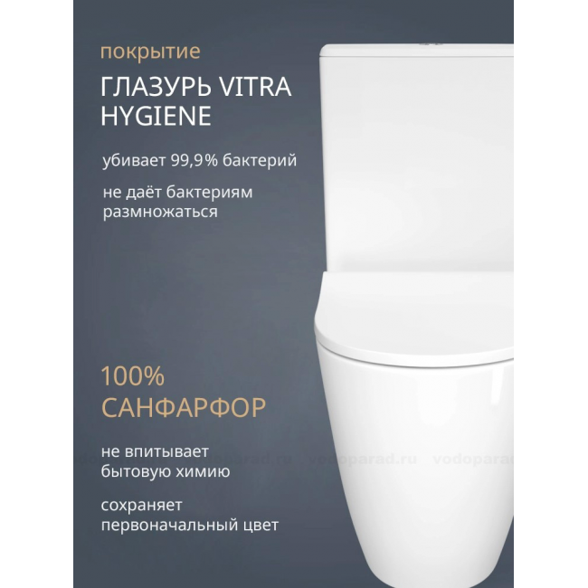 Унитаз-компакт напольный с бачком и сиденьем микролифт VitrA Sento 9830B003-7204 безободковый купить с доставкой. 100% Оригинал. Гарантия!