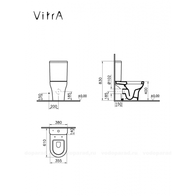 Унитаз-компакт напольный с бачком и сиденьем VitrA Zentrum 9012B003-7209 купить с доставкой. 100% Оригинал. Гарантия!