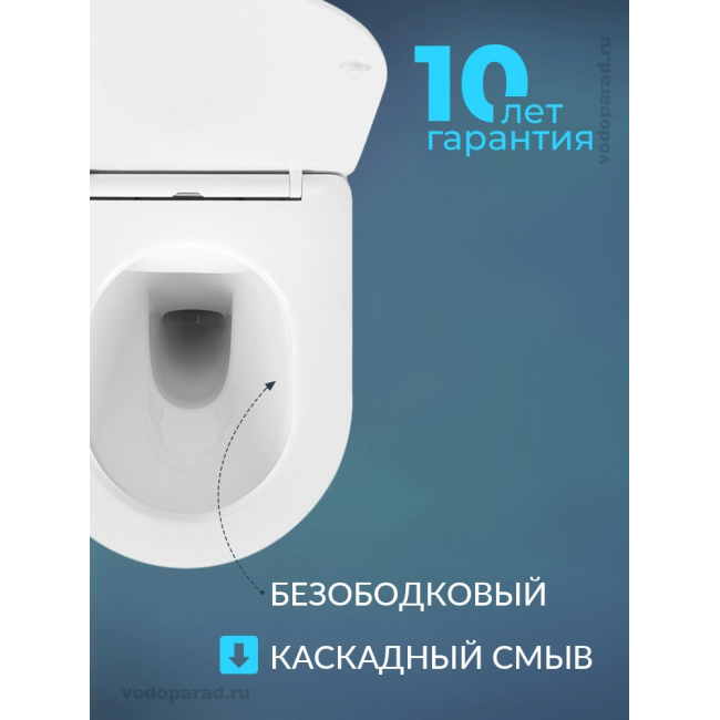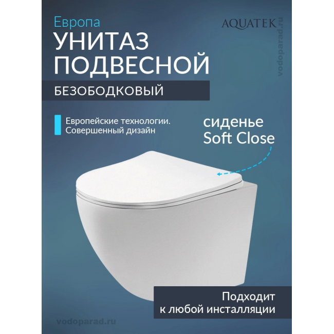 Унитаз-компакт подвесной Aquatek Европа AQ1900-00 безободковый, тонкое сиденье soft close купить с доставкой. 100% Оригинал. Гарантия!