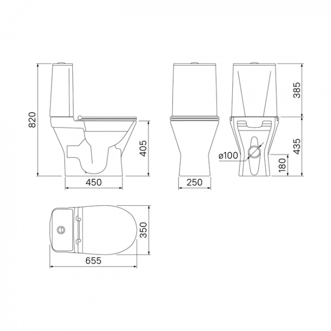 | Высота унитаза с бачком | 820 |