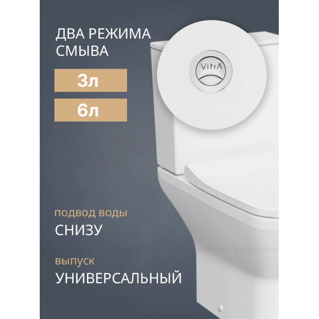 Унитаз-компакт с сиденьем микролифт VitrA Integra Square 9833B003-7205 купить с доставкой. 100% Оригинал. Гарантия!