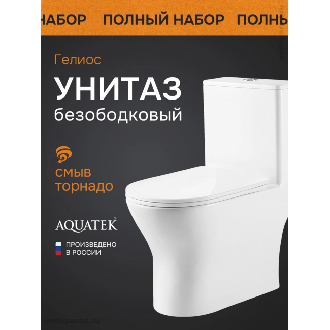 Унитаз-моноблок напольный, безободковый, система смыва торнадо, AQ2816T-00 ГЕЛИОС, 670*350*760, крышка-сиденье дюропласт soft-close купить с доставкой. 100% Оригинал. Гарантия!