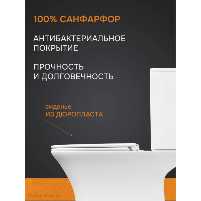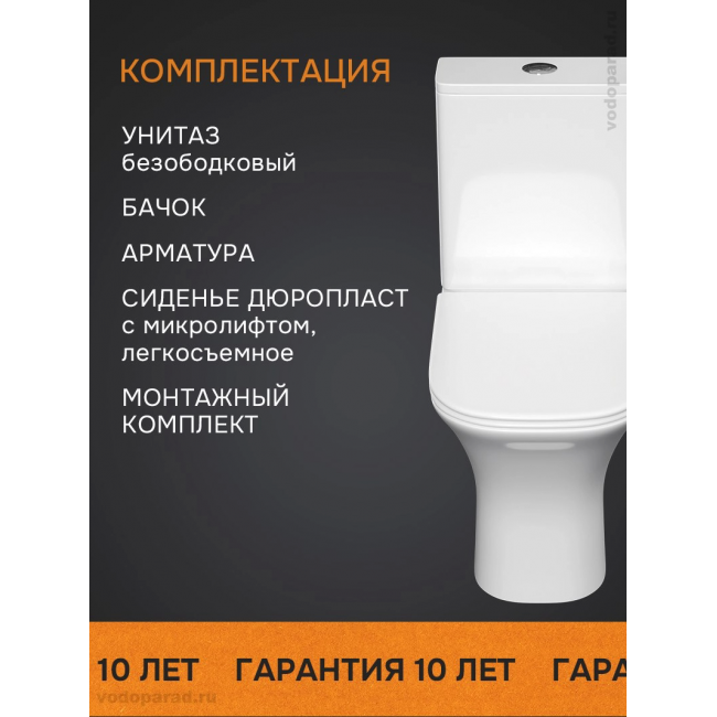 | Комплектация | Унитаз с сидением и крышкой, с бачком со сливной и наливной арматурой, с крепежом к полу |