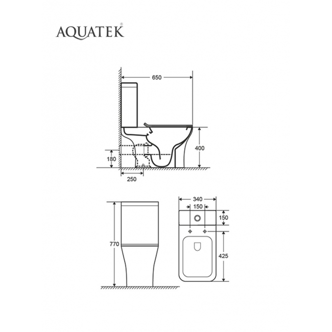 Унитаз напольный, безободковый Aquatek Optima Square 650x340x770, крышка-сиденье дюропласт, легкосъемное с микролифтом купить с доставкой. 100% Оригинал. Гарантия!