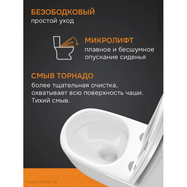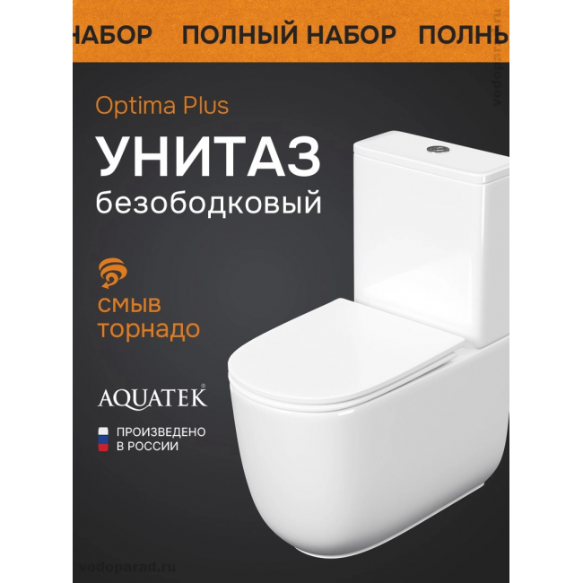 Унитаз напольный, безободковый, система смыва торнадо, Aquatek Optima Plus 620x355x790, крышка-сиденье дюропласт, легкосъемное с микролифтом купить с доставкой. 100% Оригинал. Гарантия!