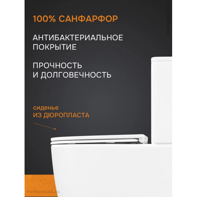| Комплектация | Унитаз с сидением и крышкой, с бачком со сливной и наливной арматурой, с крепежом к полу |