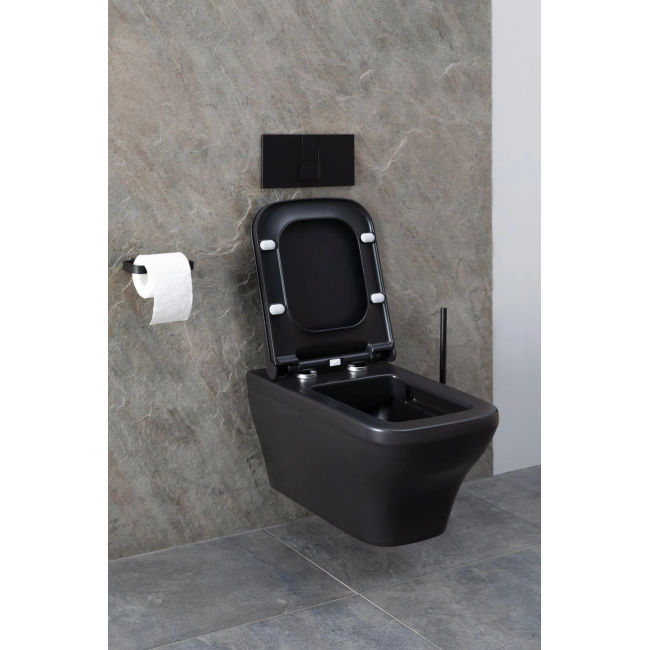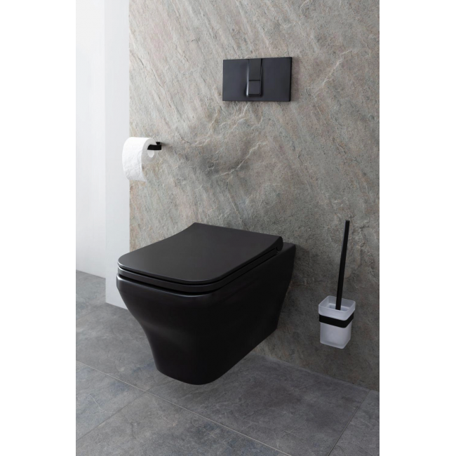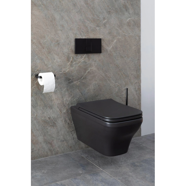 Унитаз подвесной Allen Brau Infinity в черном матовом исполнении прекрасно дополнит туалетные и ванные комнаты, декорированные кафелем под мрамор, древесину и другие фактуры. Модель хорошо дополняет стиль хай-тек, лофт и рустик. Чаша имеет строгую прямоугольную форму, оснащена крышкой-сиденьем из дюропласта и горизонтальным направлением выпуска. Внешний вид унитаза лаконичный, экономит пространство, а весь подвод коммуникаций закрывается стеной, не создавая визуального шума. Модель безободковая, что означает высокую гигиеничность, так как в чаше нет мест, где бы скапливались бактерии и образовывались следы ржавчины. Установку унитаза лучше доверить профессионалу на стадии ремонтных работ.