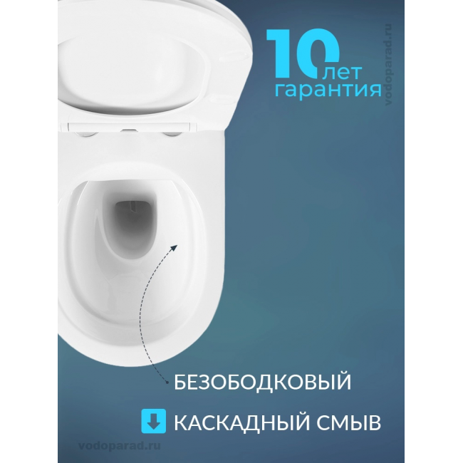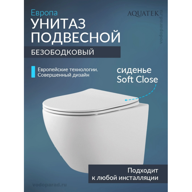 Унитаз подвесной Aquatek Европа AQ1901-00 безободковый, тонкое сиденье soft close купить с доставкой. 100% Оригинал. Гарантия!