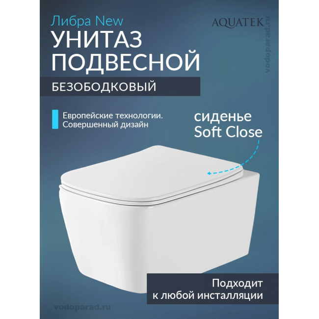 Унитаз подвесной Aquatek Либра New AQ1148N-00 купить с доставкой. 100% Оригинал. Гарантия!