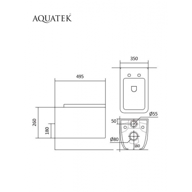 - Чаши унитазов Aquatek имеют форму, которая препятствует образованию брызг при использовании.