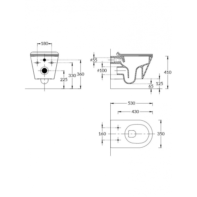 Подвесной безободковый унитаз без сиденья. Рекомендуемое сиденье PLAZA Modern доступно в белом цвете, крышка оснащена функциями плавного опускания Soft Close и быстрого снятия Clip Up.