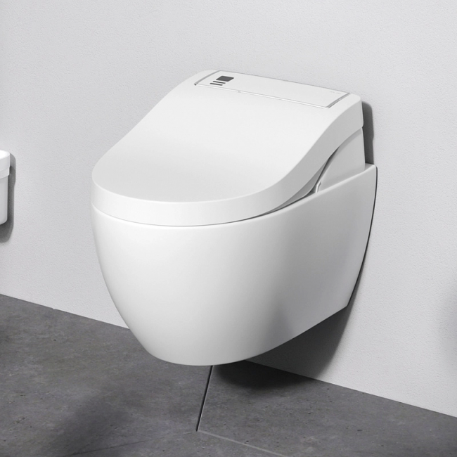 Подвесной унитаз Awe в комплекте с электронным биде CleanCare. Ничто не нарушает чистоту линий – полностью скрытое крепление керамики скрытый подвод воды и электричества. Крышка-биде идеально сочетается по форме с керамикой Awe.
