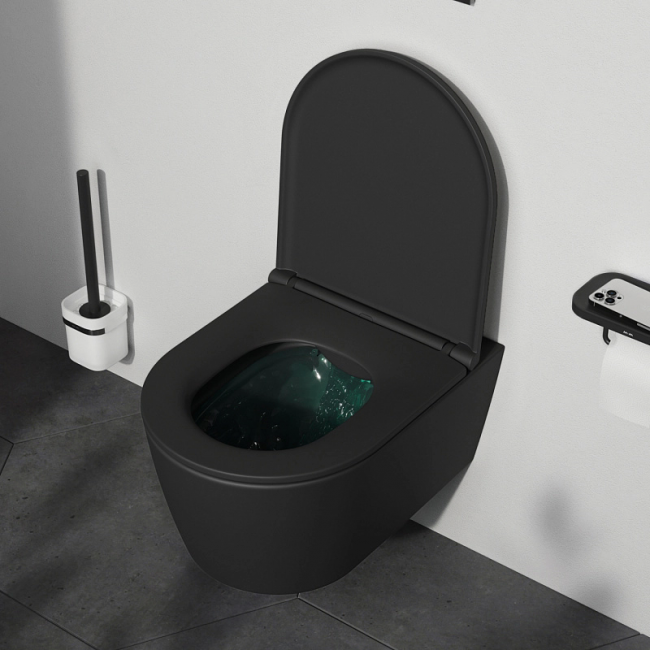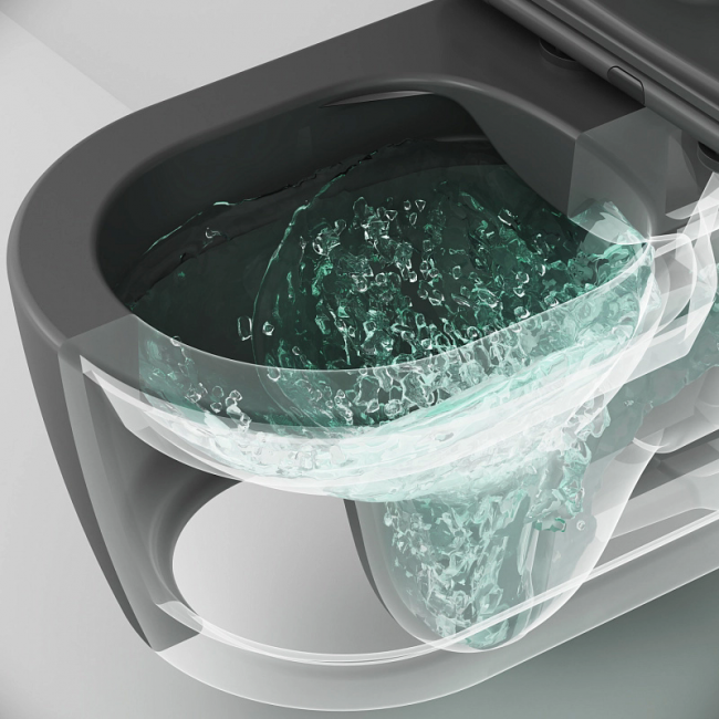 Лаконичный дизайн унитаза разработан итальянским дизайнерским агентством DanelonMeroni. Идеальный матовый черный цвет делает продукт идеально подходящим для современного интерьера. FlashClean - новое поколение безободковых унитазов без использования пластика: 100% гигиеничности 0% брызг.
