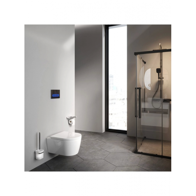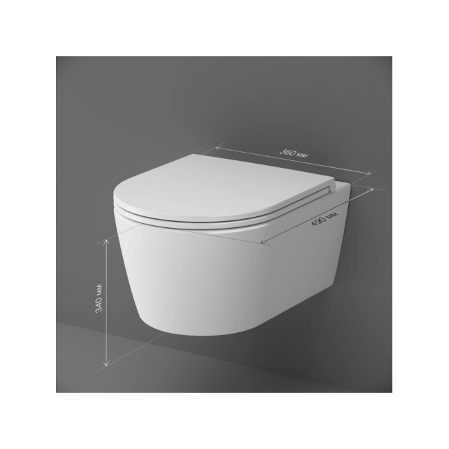 Подвесной унитаз нового безободкового поколения FlashClean бренда AM.PM коллекции Func, разработанный европейской студией DanelonMeroni, компактно впишется в современный интерьер. Форма унитаза - овальная. Размер изделия (Ш/Г/В): 360x490x340 мм. Цвет – белый.