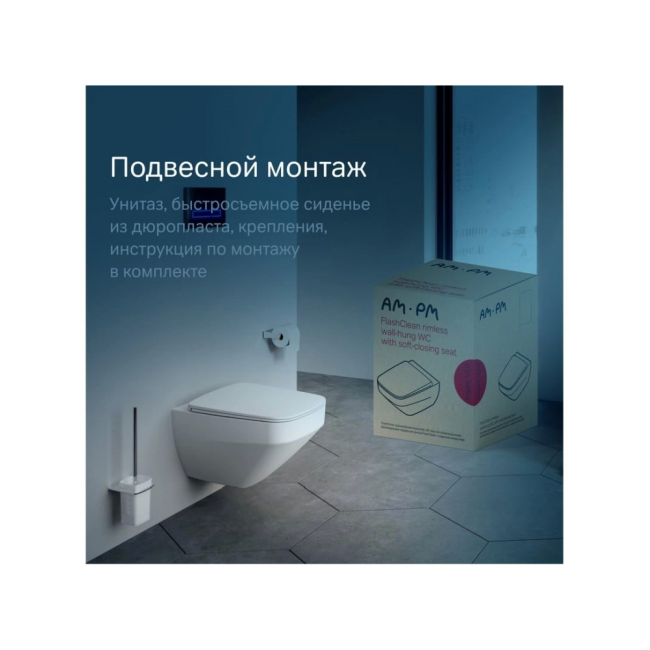 Унитаз подвесной с сиденьем микролифт AM.PM Inspire V2.0 C50A1700MWSC белый безободковый купить с доставкой. 100% Оригинал. Гарантия!