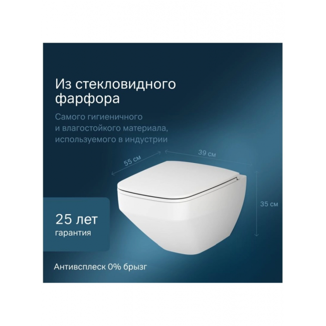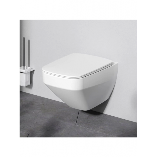 влагостойкий стекловидный фарфор, скрытые крепления и фановый выход делают уборку унитаза легкодоступной, а быстросъемное дюропластовое сиденье противоборствует появлению царапин.