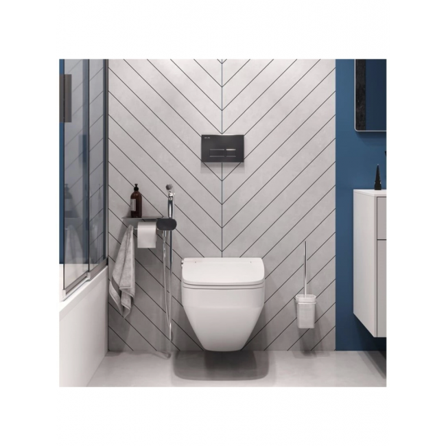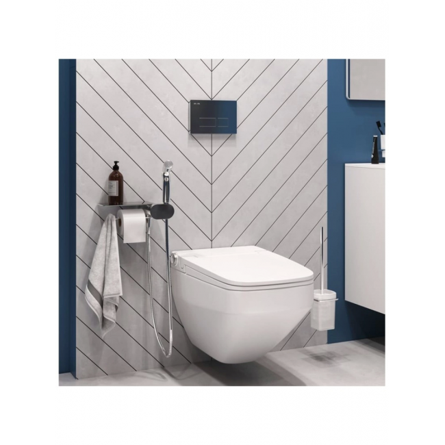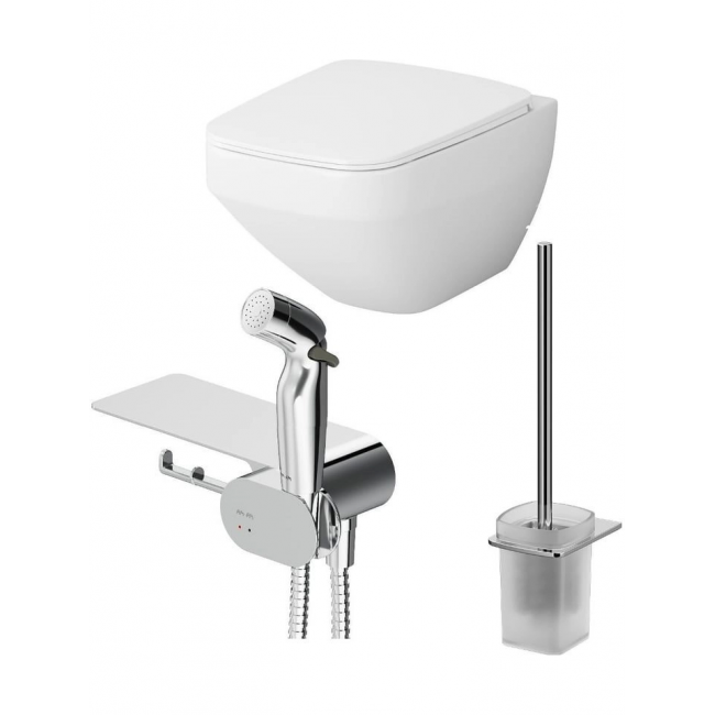 Инновационное и стильное дизайнерское решение для вашей туалетной комнаты от AM.PM. Полностью готовый к установке комплект: подвесной унитаз FlashClean, гигиенический набор с полкой, cтойка с туалетной щеткой. Современный дизайн и новая квадратная форма в керамике АМ.РМ; FlashClean — новое поколение безободковых унитазов без использования пластика: 100 % гигиеничности, 0% брызг. Многофункциональный гигиенический набор представляет собой удобную полочку, на которой можно разместить все, что необходимо вам под рукой. На интегрированном держателе можно размещать туалетную бумагу, а на крючке - полотенце. Завершает комплект подвесная cтойка с туалетной щеткой в стиле Hi-Tech. Продуманный дизайн и удивительные детали – отделение для хранения в держателе для туалетной бумаги.
