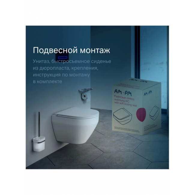 Унитаз подвесной с сиденьем микролифт AM.PM Spirit V2.0 C701700SC белый безободковый купить с доставкой. 100% Оригинал. Гарантия!