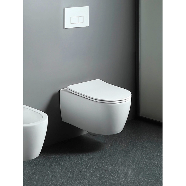 Ультратонкое сиденье из дюропласта устойчиво к царапинам, легко снимается для уборки одним нажатием кнопки. Механизм Soft Close обеспечивает плавное и бесшумное закрытие крышки унитаза, без лишних контактов и усилий.