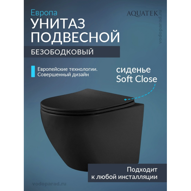 Унитаз подвесной с сиденьем микролифт Aquatek Европа AQ1901-MB безободковый купить с доставкой. 100% Оригинал. Гарантия!