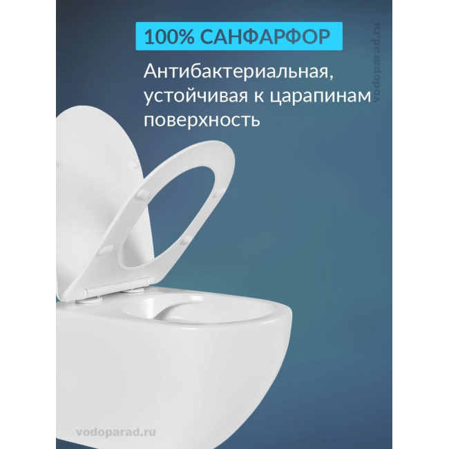 Унитаз Aquatek изготовлен из 100% санитарного фарфора, который сохраняет безупречную белизну на протяжении всего срока службы. Сиденье легко снимается для уборки одним нажатием кнопки. Механизм Soft Close обеспечивает плавное закрытие крышки унитаза. Безободковая конструкция унитаза облегчает уборку.