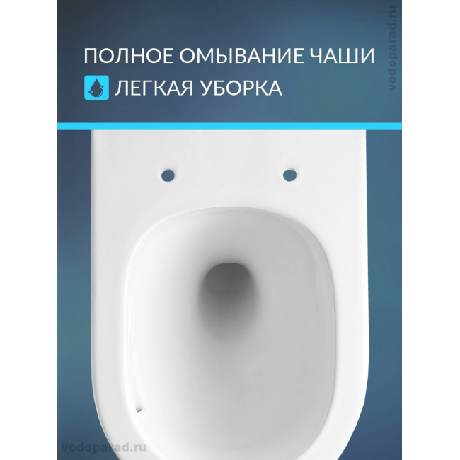 Безободковая конструкция чаши обеспечивает гигиеничность, отсутствие скрытых участков и простоту в уходе. Этот современный унитаз оснащен ультратонким легкосъемным сиденьем из дюропласта, что обеспечивает простоту в уходе и гигиеничность. Система плавного опускания сиденья предотвращает резкие звуки и обеспечивает комфортное использование.
