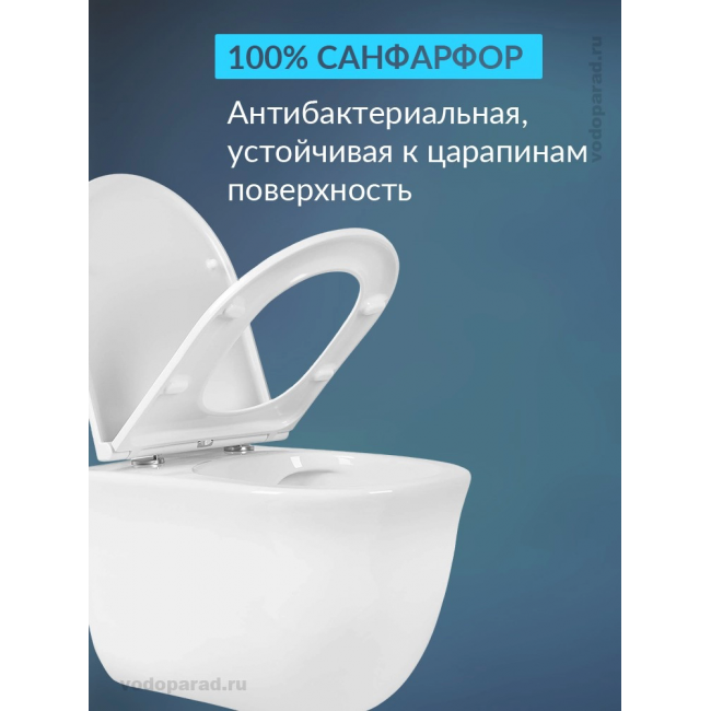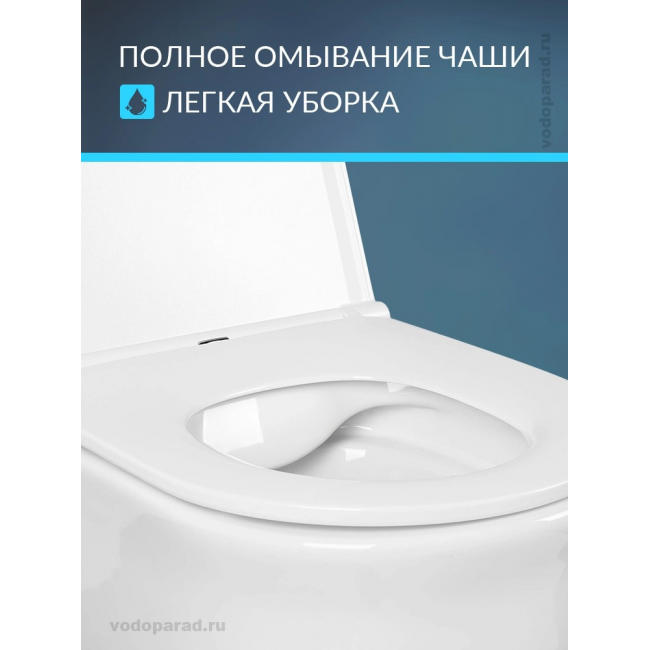 Унитаз Aquatek изготовлен из 100% санитарного фарфора, который сохраняет безупречную белизну на протяжении всего срока службы. Сиденье легко снимается для уборки одним нажатием кнопки. Механизм Soft Close обеспечивает плавное закрытие крышки унитаза. Безободковая конструкция унитаза облегчает уборку.