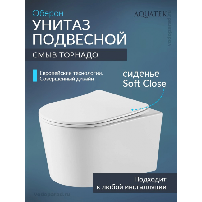 Унитаз подвесной с сиденьем микролифт Aquatek Оберон AQ1365T-00 безободковый купить с доставкой. 100% Оригинал. Гарантия!