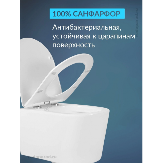 Ультратонкое сиденье из дюропласта устойчиво к царапинам, легко снимается для уборки одним нажатием кнопки. Механизм Soft Close обеспечивает плавное и бесшумное закрытие крышки унитаза, без лишних контактов и усилий.