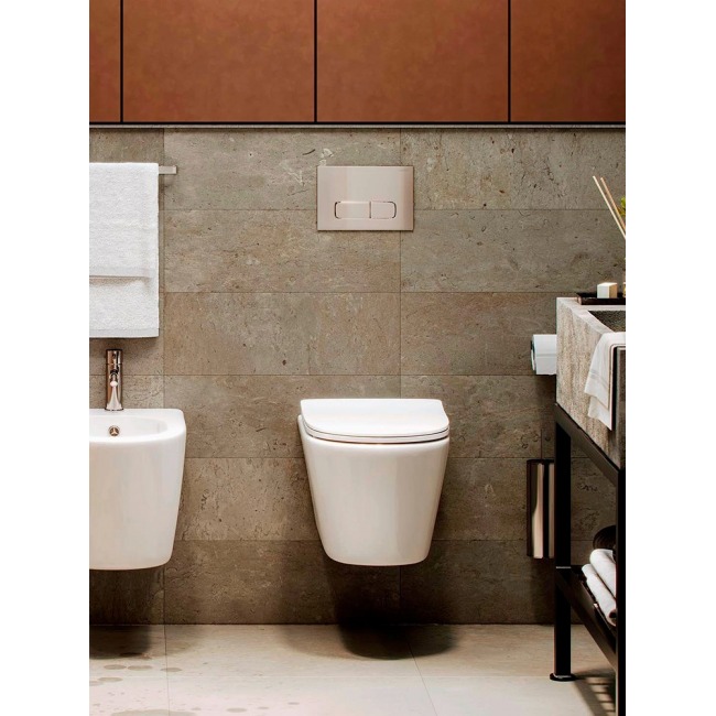 Ультратонкое сиденье из дюропласта устойчиво к царапинам, легко снимается для уборки одним нажатием кнопки. Механизм Soft Close обеспечивает плавное и бесшумное закрытие крышки унитаза, без лишних контактов и усилий.