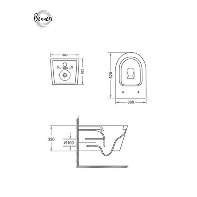 - Унитаз BENNERI подходит как для классического, так и для современного интерьера. Эффективный смыв осуществляется каскадным способом, форма чащи препятствует образованию брызг.