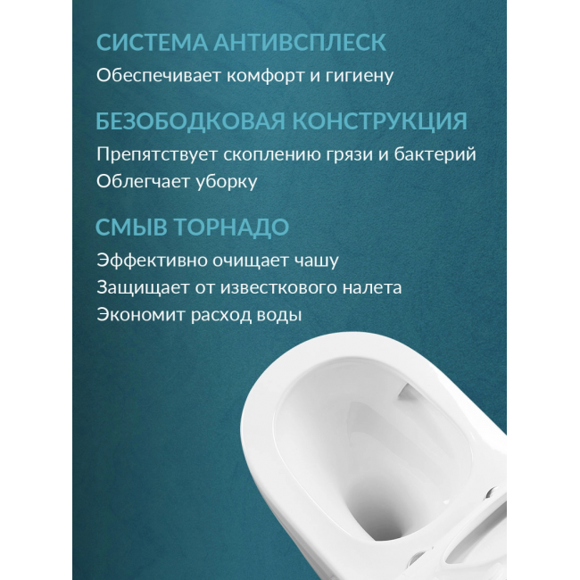 - Безободковая конструкция подвесного унитаза обеспечивает его максимальную гигиену и удобство использования. Безободковый унитаз легко моется, требует меньше усилий и времени по сравнению с традиционными моделями. Кроме того, отсутствие ободка предотвращает скопление микробов и ржавчины, что уменьшает вероятность возникновения неприятных запахов в туалете.