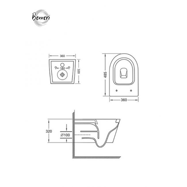 - Унитаз BENNERI изготовлен из 100% фарфора с использованием технологии высокотемпературного обжига. Гладкая глазурованная поверхность санитарной керамики BENNERI устойчива к загрязнениям, сохраняет безупречную белизну и жемчужный блеск на долгое время.