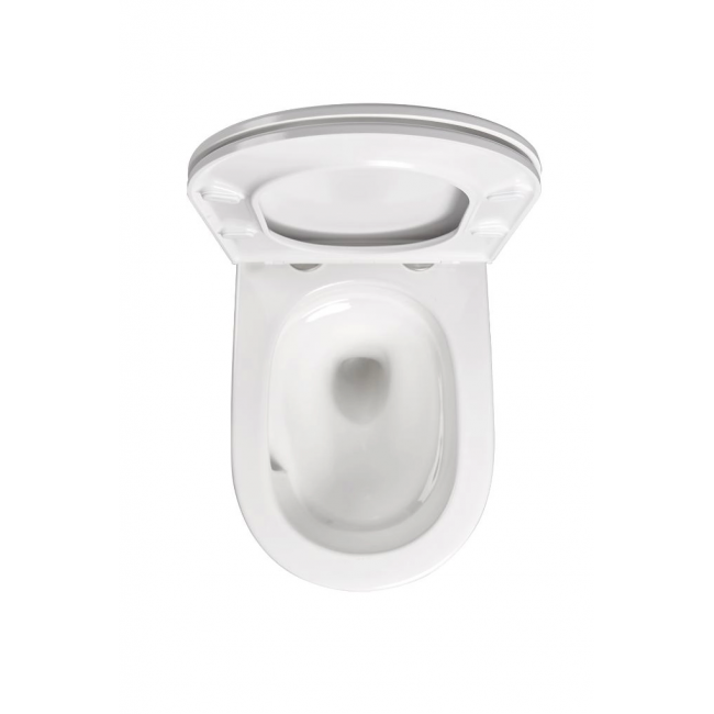 Унитаз идёт в комплекте со стильным плоским сиденьем из дюропласта - можно не бояться царапин на поверхности, а значит нет места для бактерий и сиденье со временем не пожелтеет.