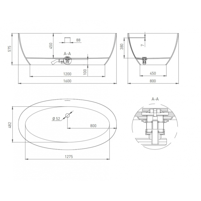 Ванна Salini Alda 160x80 101923M S-Stone купить с доставкой. 100% Оригинал. Гарантия!