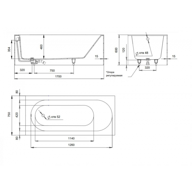 Ванна Salini Fabia 170x75 102611G S-Sense купить с доставкой. 100% Оригинал. Гарантия!