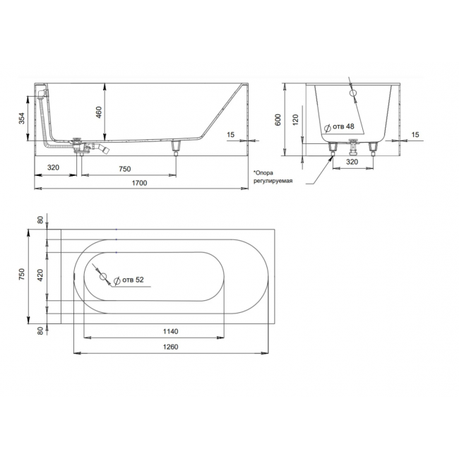 Ванна Salini Fabia 170x75 102611M S-Sense купить с доставкой. 100% Оригинал. Гарантия!