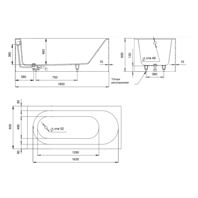 Ванна Salini Fabia 180x80 102612M S-Sense купить с доставкой. 100% Оригинал. Гарантия!