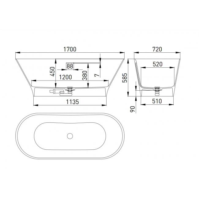 Ванна Salini Mona 170x72 102912G S-Sense купить с доставкой. 100% Оригинал. Гарантия!