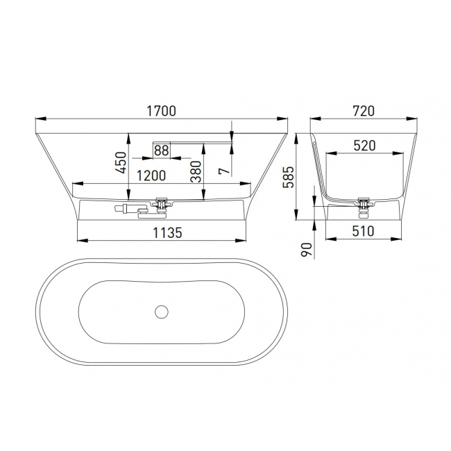 Ванна Salini Mona 170x72 102922M S-Stone купить с доставкой. 100% Оригинал. Гарантия!