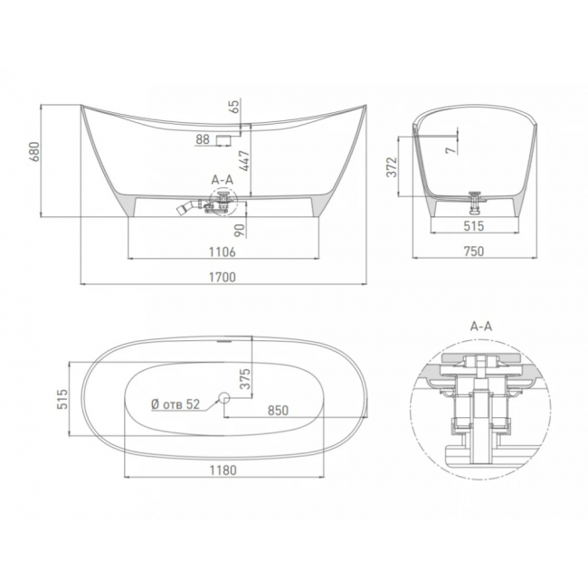 Ванна Salini Noemi 170x75 101712G S-Sense купить с доставкой. 100% Оригинал. Гарантия!