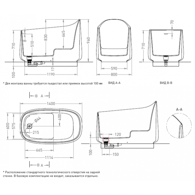Длина изделия составляет всего 140 см, делая ванну идеальной находкой для небольших ванных комнат. Встроенное сиденье позволяет принимать ванну как сидя, так и полулёжа, полностью расслабляясь в воде. Высокое изголовье и широкие боковые бортики делают размещение в ванне более комфортным и способствуют полноценной релаксации.