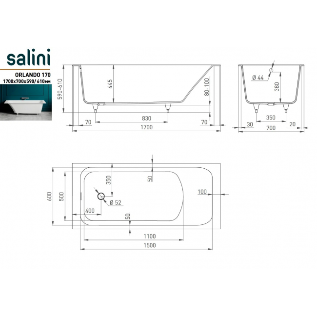 Ванна Salini Orlanda 170x70 102011M S-Sense купить с доставкой. 100% Оригинал. Гарантия!