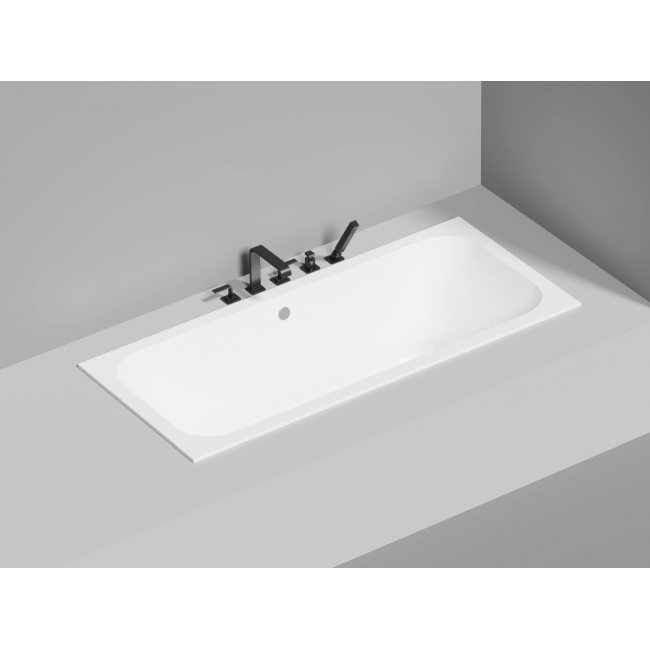 Она предназначена как для полного или частичного встраивания, так и для пристенной или угловой установки. Ванна характеризуется одинаковым уклоном бортов и расположенными посередине сливом-переливом и донным клапаном. Название модели Axis («Ось) отражает характерную симметрию ванны во фронтальной проекции.