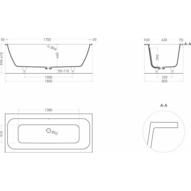 Она предназначена как для полного или частичного встраивания, так и для любой установки — пристенной, угловой или отдельно стоящей. Ванна характеризуется одинаковым уклоном бортов. Название модели Axis («Ось») отражает характерную симметрию ванны во фронтальной проекции.