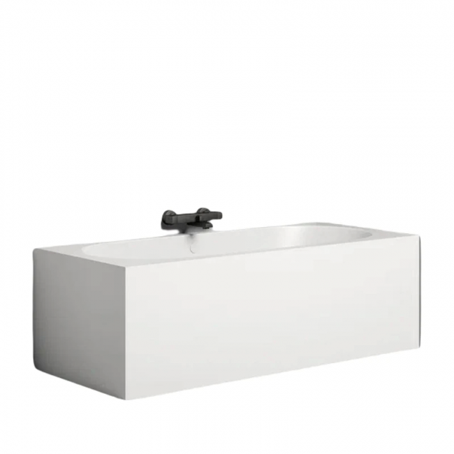 Вневременная эстетика и чистые линии корпуса ванны делают её уместной и желанной как в классическом, так и в современном интерьере. Ванна предназначена для полного или частичного встраивания, а также для любой установки — пристенной, угловой или отдельно стоящей. Модель отличают донный клапан и слив-перелив с центральным расположением.