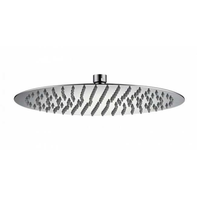 Душевая насадка верхняя, круглая, материал нержавеющая сталь (тонкая), диаметр 300 мм, серая лицевая пластина, темно-серые форсунки.