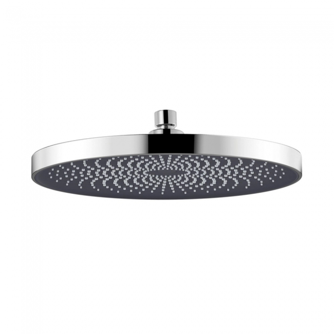 Верхняя лейка из ABS-пластика, диаметр 260 мм. Цвет: корпус хромированный, лицевая часть темно-серая, форсунки - белые. Шарнирное крепление. Материал: лейка из ABS-пластика, форсунки из силикона.