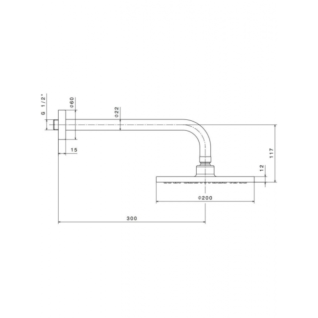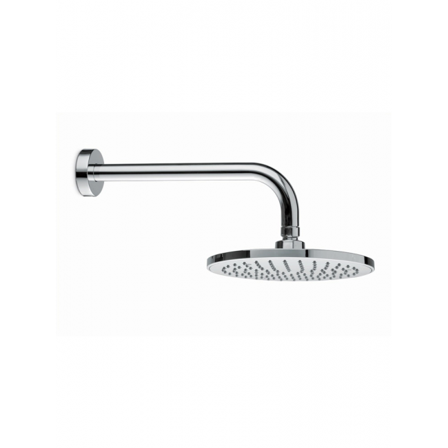 Латунная верхняя круглая душевая лейка «тропический дождь» с кронштейном и выводом из стены, диаметр 200 мм.