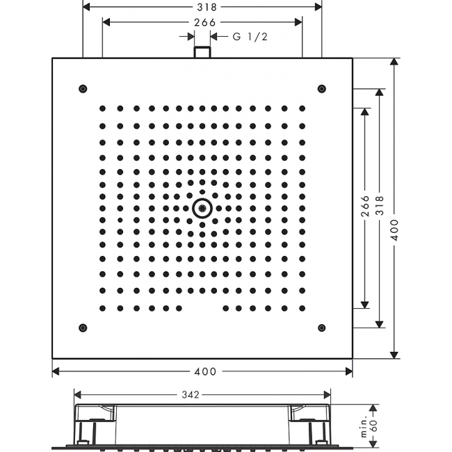 - размер душевого диска: 400 x 400 мм